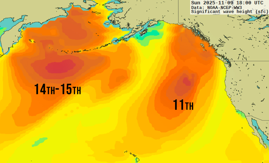 A series of storms, originating in Alaska, will begin to push swells with cool water down the coast and into the California bight. Look for a major storm around the 14/15th to reshape many of the beaches