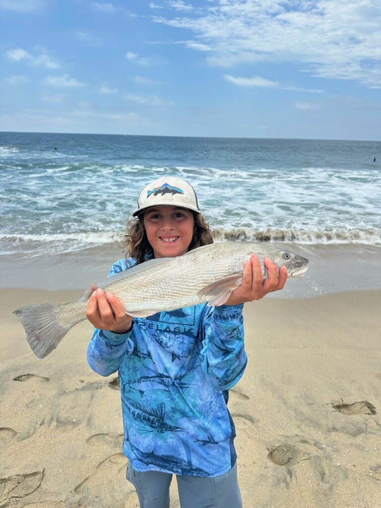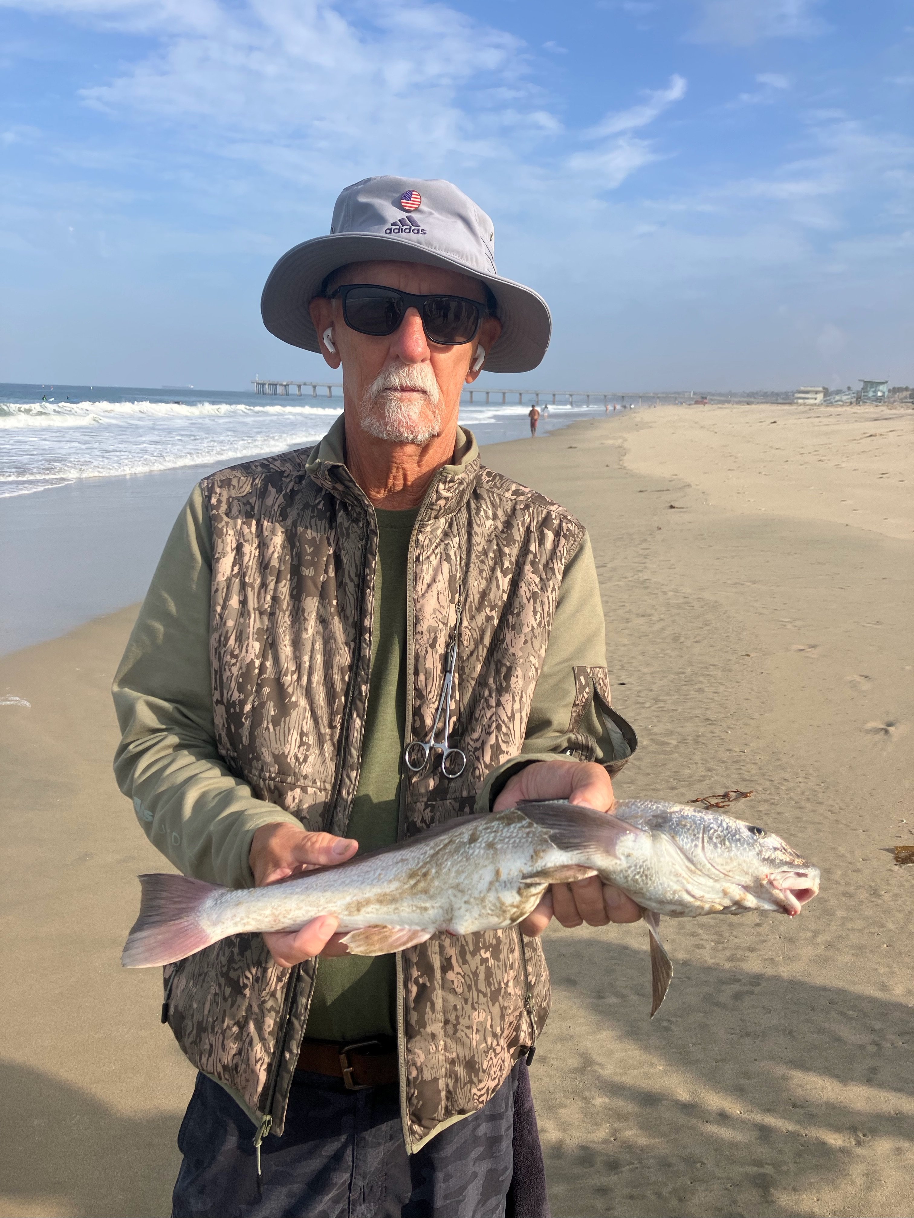 San Diego: Warmer water in San Diego seems to have slowed surf fishing this week…possibly as larger fish, like corbina, move northward. From the powerplant at Carlsbad all the way to the Ponto jetty there has been good fishing for yellowfin croaker on all types of bait. Also, quite a few small barred surfperch in the mix. At both Torrey Pines and Black’s Beach, anglers fishing near rock with collected grunion are having a field day on calico bass. Misson Beach continues to have both lots of kelp in the surf and good fishing for smaller corbina and 2-3LB spotfin croaker. Sand crabs have been the secret with anglers reporting that there are tons of perfect crabs under the Crystal Pier.